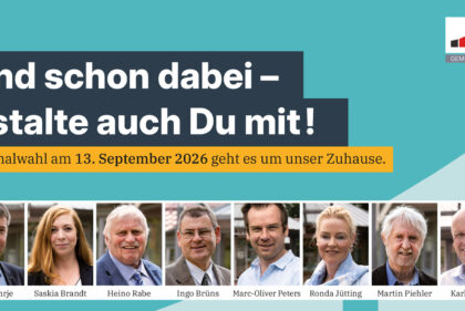 Loxstedt, Dezember 2025 – Unter dem Motto „Wir sind schon dabei – gestalte auch Du mit!“ ruft der CDU-Gemeindeverband Loxstedt alle interessierten Bürgerinnen und Bürger dazu auf, sich aktiv an der Gestaltung der Gemeinde zu beteiligen. Bei der Kommunalwahl am 13. September 2026 geht es um die Zukunft unseres gemeinsamen Zuhauses. Die CDU Loxstedt möchte Menschen gewinnen, die Lust haben, ihre Ideen einzubringen und Verantwortung zu übernehmen. „Demokratie lebt vom Engagement ihrer Mitbürgerinnen und Mitbürger. Wir freuen uns über alle, die mit Freude, Weitsicht und Augenmaß unsere Gemeinde weiterentwickeln möchten“, erklärt der Vorstand des Gemeindeverbandes. Um Interessierten die Möglichkeit zum Kennenlernen zu geben, lädt die CDU Loxstedt zu einer Infoveranstaltung am 13. Januar 2026 um 18:30 Uhr in den Bürgersaal Loxstedt ein. Dort können sich Bürgerinnen und Bürger über die Arbeit des Verbandes informieren und erfahren, wie sie selbst für die CDU kandidieren können. Kontakt für Rückfragen und Anmeldung: E-Mail: christian.molls(at)outlook.com
